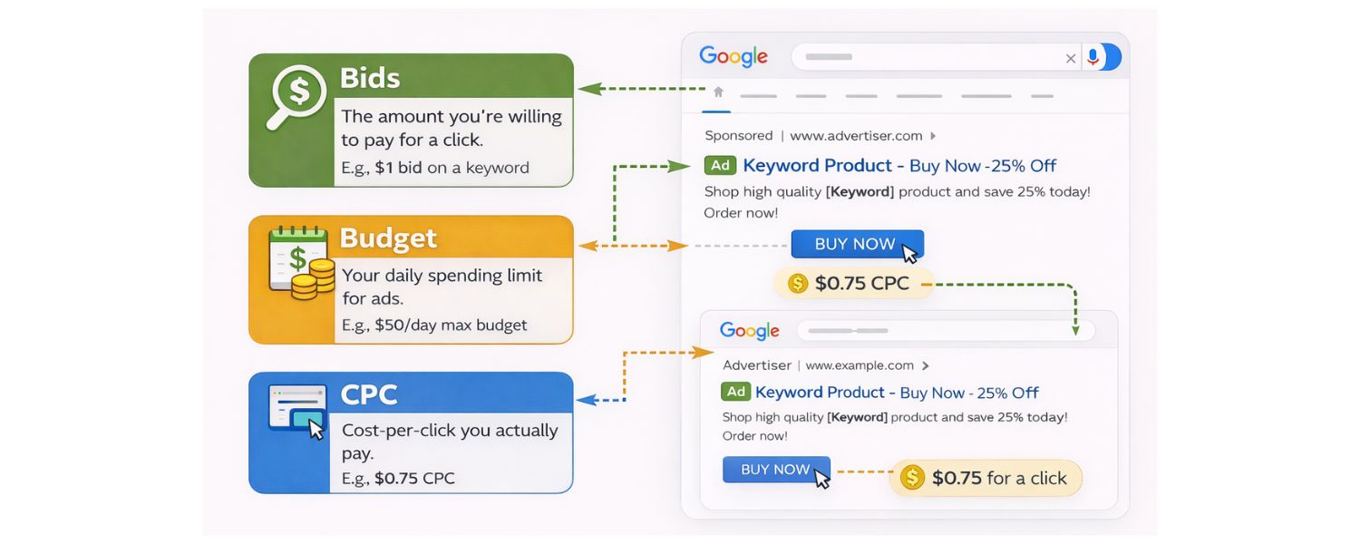 2) Bids, budgets, and cost‑per‑click