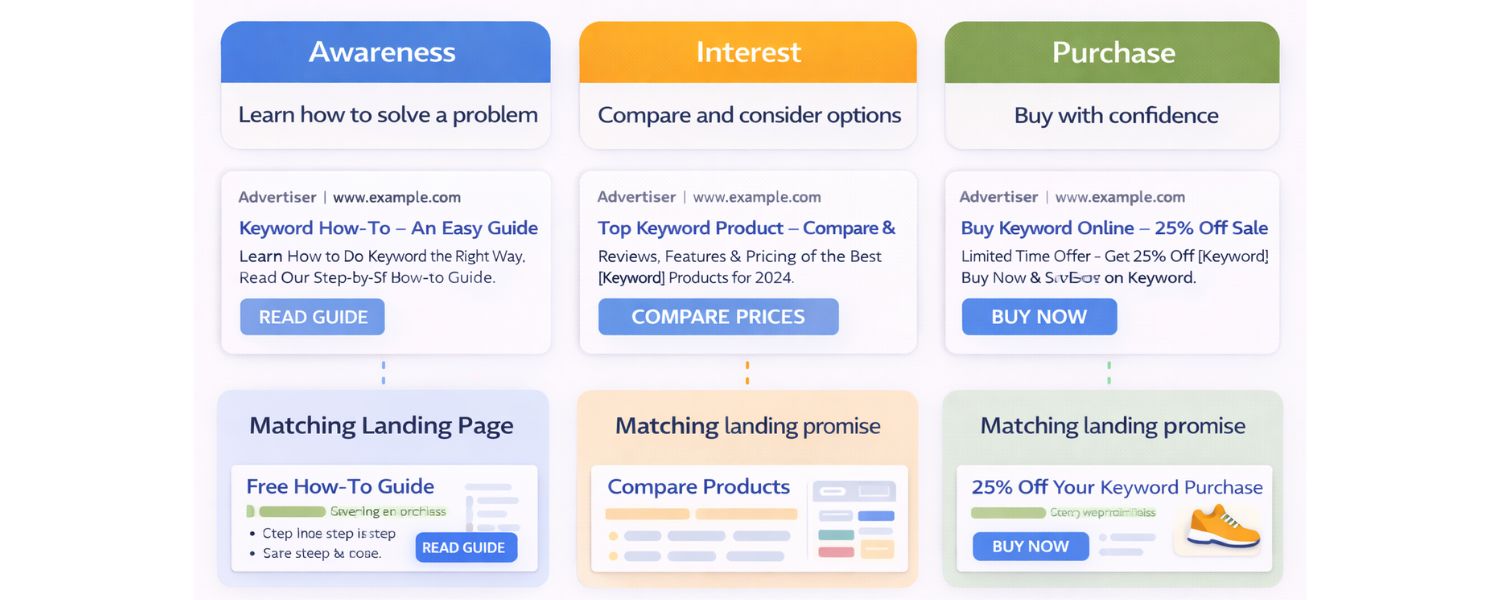 If CTR is fine but conversion rate is low, you fix the landing page experience and offer clarity—directly aligned to Quality Score components.